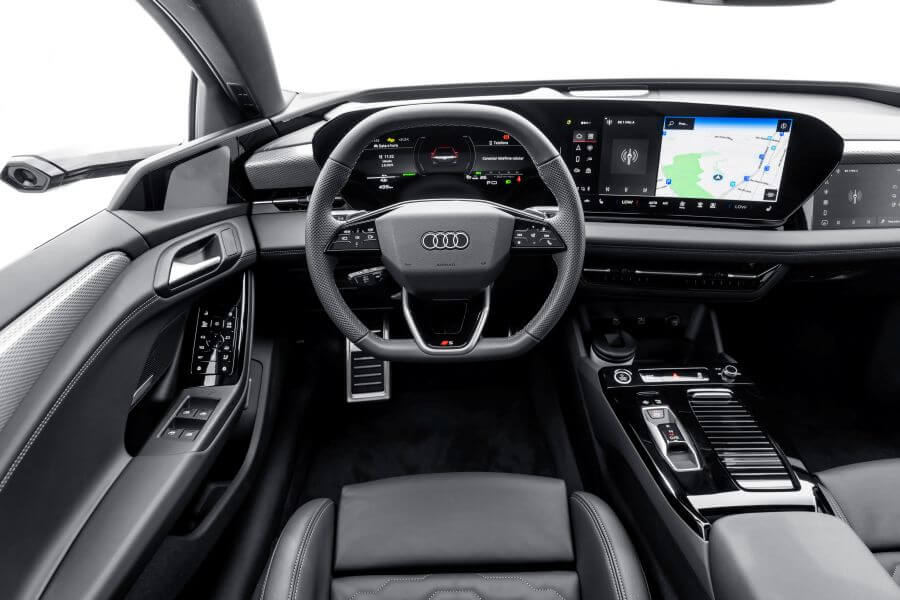 A nova filosofia de design da Audi também marca presença no interior, que está mais tecnológico, moderno e conectado à visão da fabricante em relação ao futuro da mobilidade premium. Materiais ecológicos e sofisticados, com texturas nobres e suaves ao toque, compõem a cabine do modelo, que conta com três telas distintas: Audi virtual cockpit (11,9 polegadas), Audi MMI panoramic display (14,5 polegadas) e MMI passenger display (10,9 polegadas).